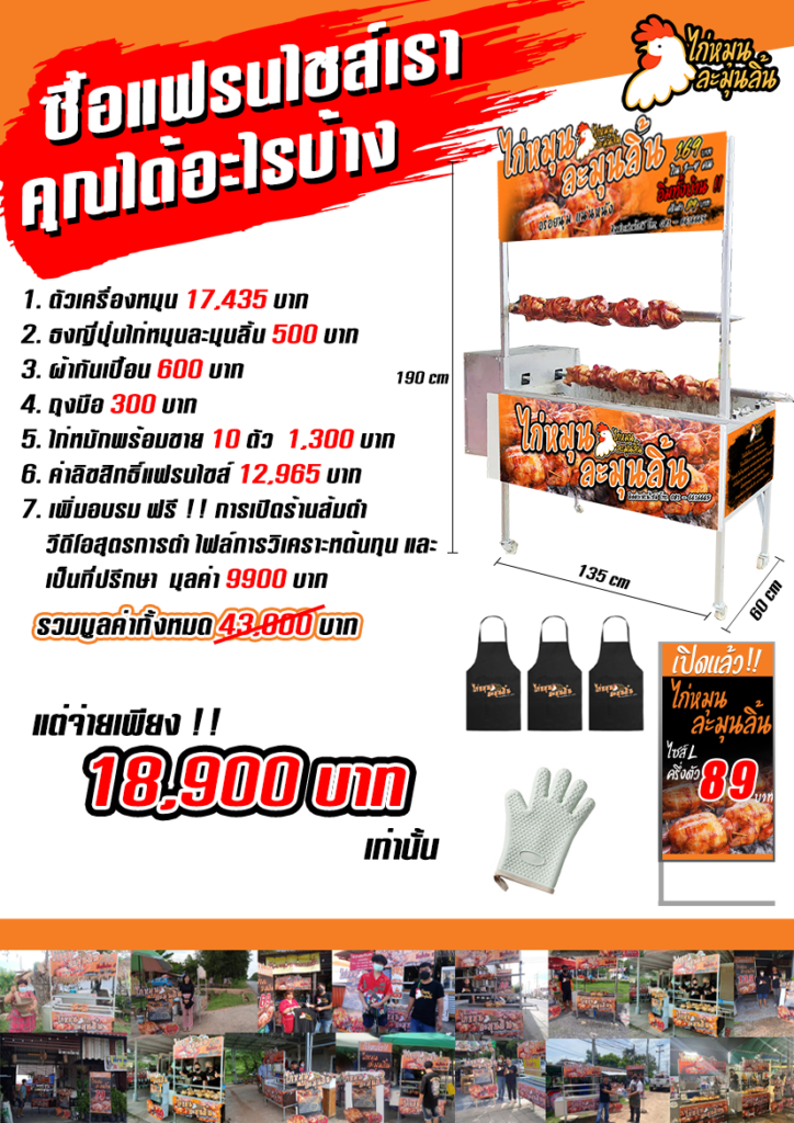 วันนี้แฟรนไชน์ ไก่หมุนละมุนลิ้น พร้อมแล้วที่จะเปิดโอกาสให้ทุกคนสร้างรายได้แบบยั่งยืน